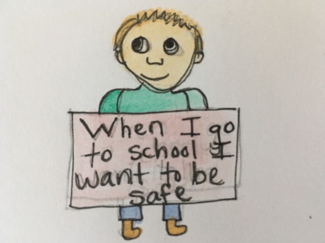 During the 2017-2018 school year, I shared the WHEN WE MARCH manuscript and accompanying illustrations with my 7th grade class in Reno, Nevada. As part of the lesson and discussion around the book, I asked the students to draw their own illustrations—a self-portrait of themselves at a march. It’s so powerful to see their ideas and their words!