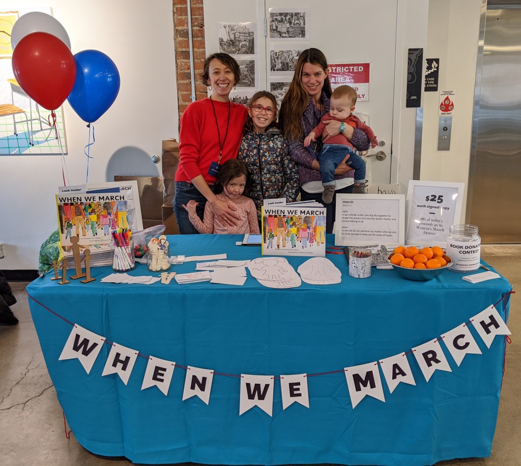 We met groups of friends who’ve been marching together for decades, family groups representing multiple generations, and small children who are already veteran march participants (one girl’s shirt said it best, simply: “Future!”). We signed books destined for classrooms and church bookshelves. We signed books for babies just born, for friends who were too sick to march, and for elderly parents who inspired civic action long ago. We sent books home with grandparents, parents, aunts and uncles, and teachers—and sometimes with someone who just wanted a fundamental reminder about why we march.